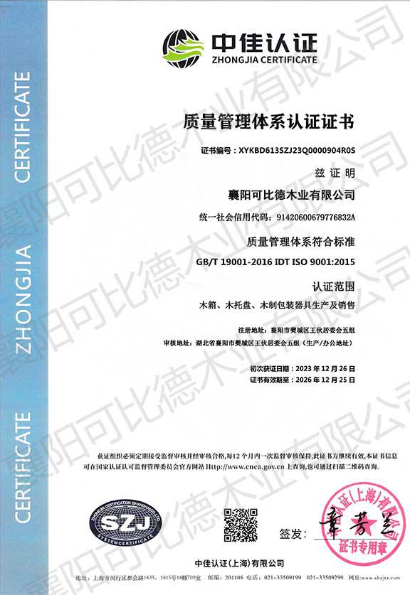襄陽(yáng)可比德(ISO9001:2015認(rèn)證企業(yè))是一家以木箱包裝為核心,為企業(yè)提供貨運(yùn)、倉(cāng)儲(chǔ)、周轉(zhuǎn)、出口包裝解決方案的制造業(yè)企業(yè),為各個(gè)行業(yè)提供各類型的木箱包裝、木托盤、木卡板的完美包裝解決方案,我們自產(chǎn)直銷,免去層層附加費(fèi)用,為客戶提供最優(yōu)質(zhì)木箱包裝產(chǎn)品的同時(shí),讓客戶享受到最低廉的價(jià)格!經(jīng)過15年對(duì)于木箱設(shè)計(jì)、木箱訂制的深入研究和實(shí)踐,完全可以針對(duì)客戶的需求,根據(jù)不同的產(chǎn)品在包裝外觀、產(chǎn)品防護(hù)、操作運(yùn)輸環(huán)節(jié)及使用環(huán)境的細(xì)節(jié)要求,進(jìn)行針對(duì)性設(shè)計(jì),量身定制符合行業(yè)標(biāo)準(zhǔn)以及出口標(biāo)準(zhǔn)的木箱包裝產(chǎn)品。為客戶提供最優(yōu)質(zhì)的服務(wù),從售前咨詢-產(chǎn)品下單-產(chǎn)品生產(chǎn)-產(chǎn)品配送-產(chǎn)品安裝-產(chǎn)品售后等完善的一站式服務(wù)。